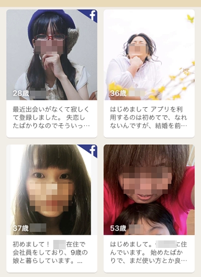 「バツイチ・中年子持ち女性が残帯の7割近くいて、しかも他のアプリと比べて会員数も圧倒的に少ない為、1ヶ月位使っているとほぼ1周しておなじみの顔ばかりになってしまう。出産適齢期を過ぎた女性ばかりなので、若くて初婚の女性を探すなら最初からオススメしないアプリです」(40代男性)